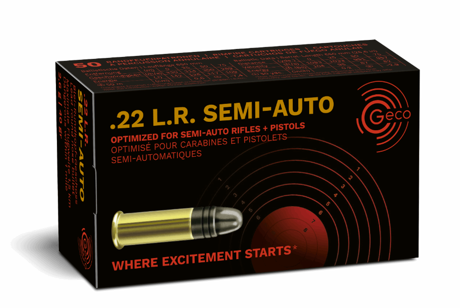GECO Semi-Auto er en svært populær .22LR-patron som gir pålitelig funksjon i halvautomatiske rifler og pistoler. Ammunisjonen er spesialutviklet for sikker mating i våpen med høy skuddtakt, og leverer jevn presisjon til en gunstig pris – perfekt for trening, plinking og mengdeskyting.