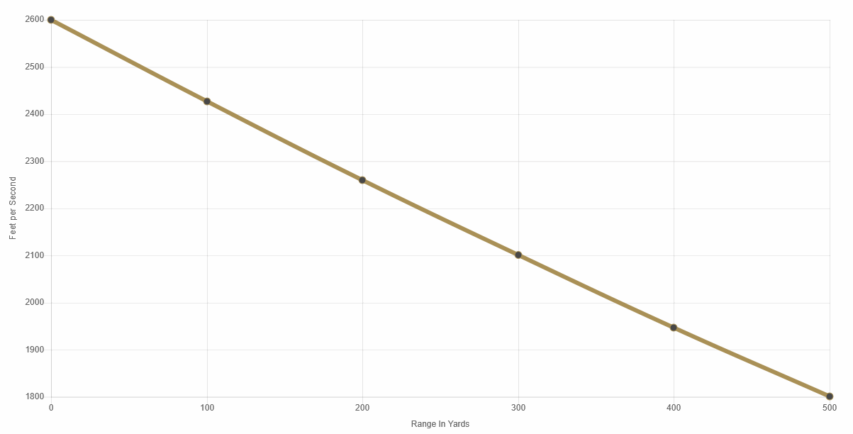 Muzzle velocity: 2600 ft/s ≈ 792 m/s