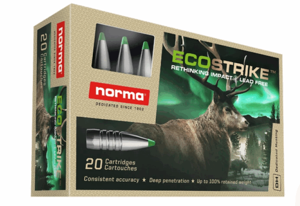 Norma Ecostrike .308 Win 150 gr / 9,7 g er en moderne, blyfri riflepatron utviklet for jegere som vil ha både presisjon og miljøvennlighet uten kompromiss. Kulens konstruksjon – 100 % duktilt kobber med plastspiss og boat-tail – gir stabil ballistikk, god BC og forutsigbar ekspansjon over varierende avstander. Den forniklede overflaten reduserer slitasje og gjør mating/drift sikre i de fleste riflesystemer, og hullspissen/Blade-lignende utforming sikrer at kula initierer ekspansjon selv ved lavere terminalhastigheter. Ecostrike er godt egnet til storvilt, fungerer godt med lyddemper og er et godt valg for jegere som ønsker et blyfritt alternativ med høy treffsikkerhet og repeterbarhet.