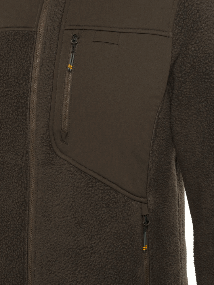 Det tykke sherpa-fôret holder deg varm selv på de kaldeste dagene, mens den tekniske fleeceoverflaten sørger for god slitestyrke og pusteevne. Fargen Brown Bark gir et naturlig og diskret uttrykk som passer perfekt til jakt og skog.