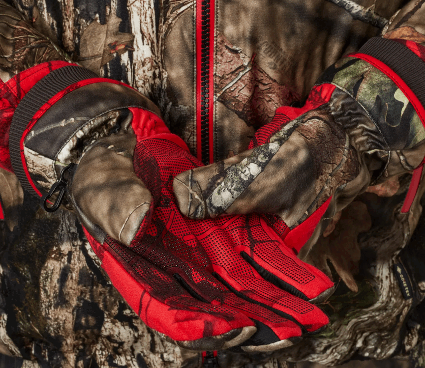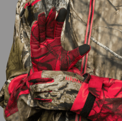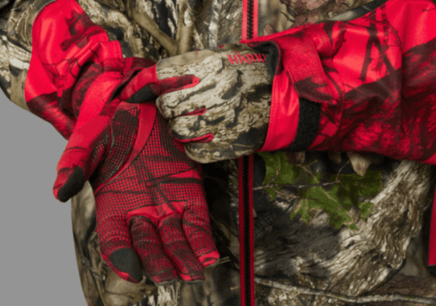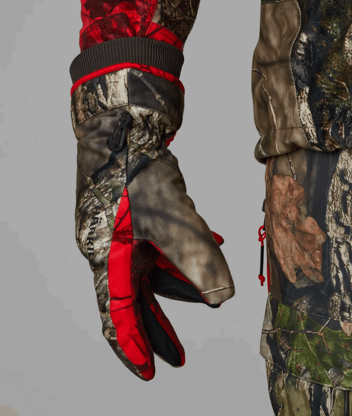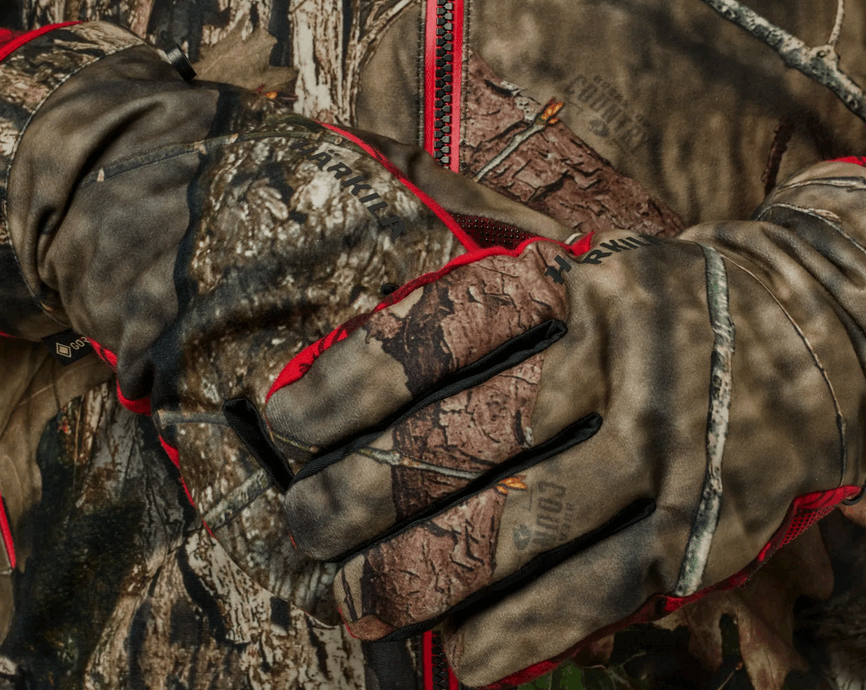 Härkila Moose Hunter 2.0 / Harkila Moose Hunter 2.0 Fleece Hansker leveres i det kamuflasjemønstrede MossyOak® Break-Up Country® / MossyOak® Red, utviklet for å gli sømløst inn i nordisk natur – og forbli usynlig for viltet.