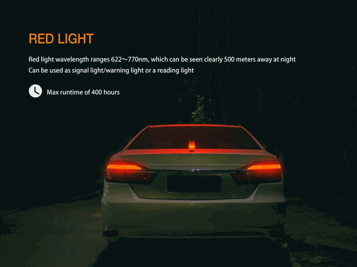 To-modus design: 6 hvite lysnivåer, 2 røde lysnivåer
