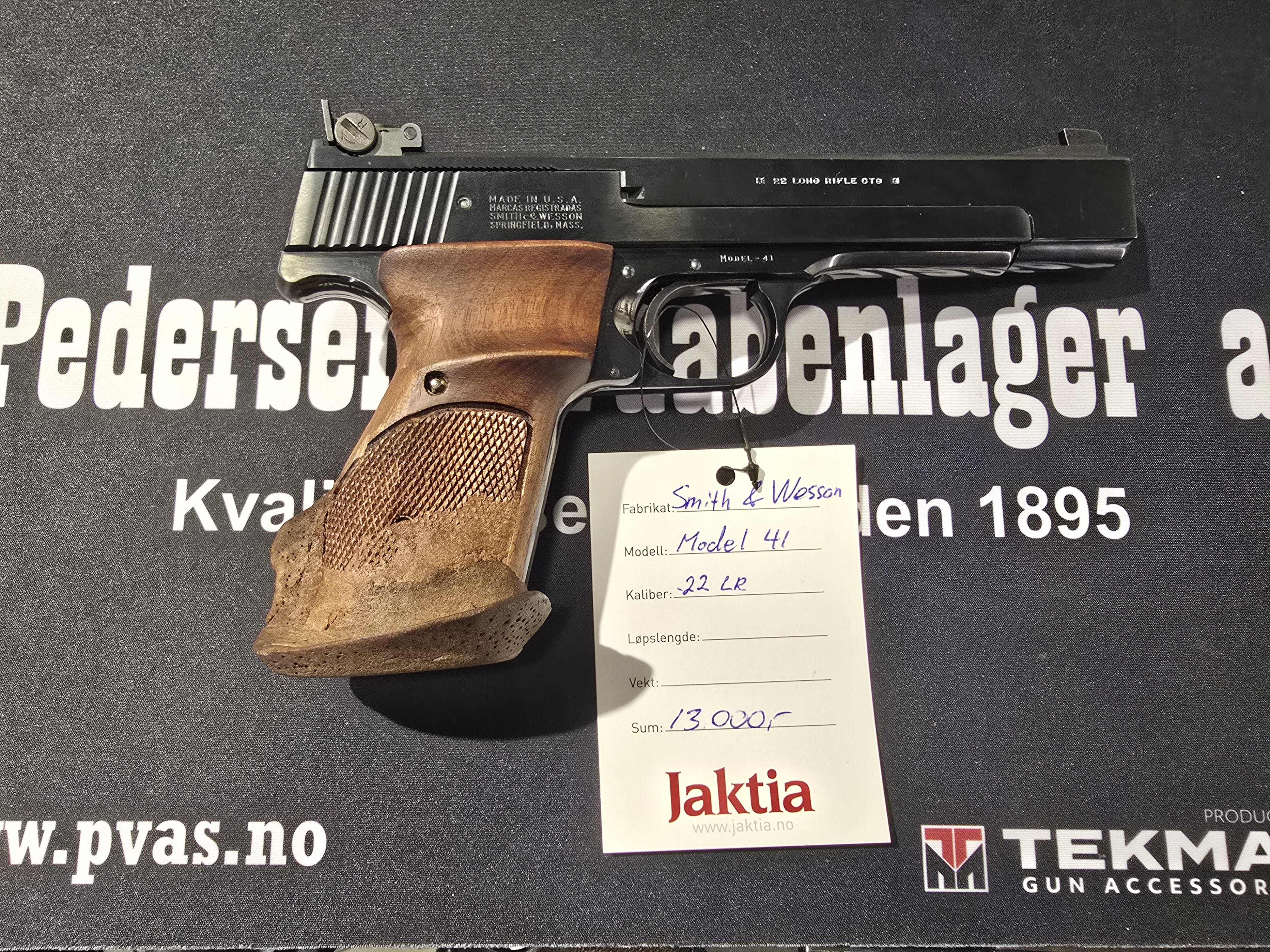 Smith & Wesson Model 41 er en legendarisk .22 LR-pistol designet først og fremst for konkurranse og presisjonsskyting. Den ble introdusert i etterkrigsårene og har gjennom flere generasjoner opparbeidet seg et rykte for rent avtrekk, god balanse og førsteklasses presisjonsmuligheter. Denne annonsen gjelder en brukt Model 41 med 5,5" (≈140 mm) løp — et populært valg som gir god balanse mellom presisjon og håndterbar lengde.