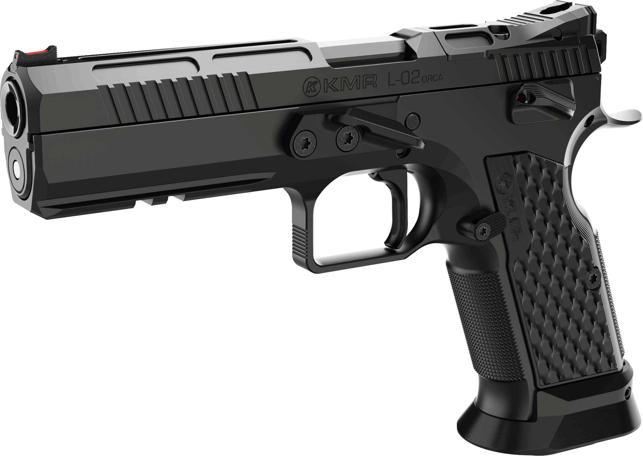 KMR L-02 ORCA OR er en av de mest komplette konkurransepistolene på markedet – konstruert for maksimal presisjon, stabilitet og fart på banen. Pistolen er bygget i stål, CNC-maskinert fra massive blokker, og utstyrt med KMRs unike BRS (Barrel Ring System) som stabiliserer løpet inne i sleiden for optimal presisjon.