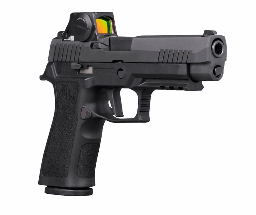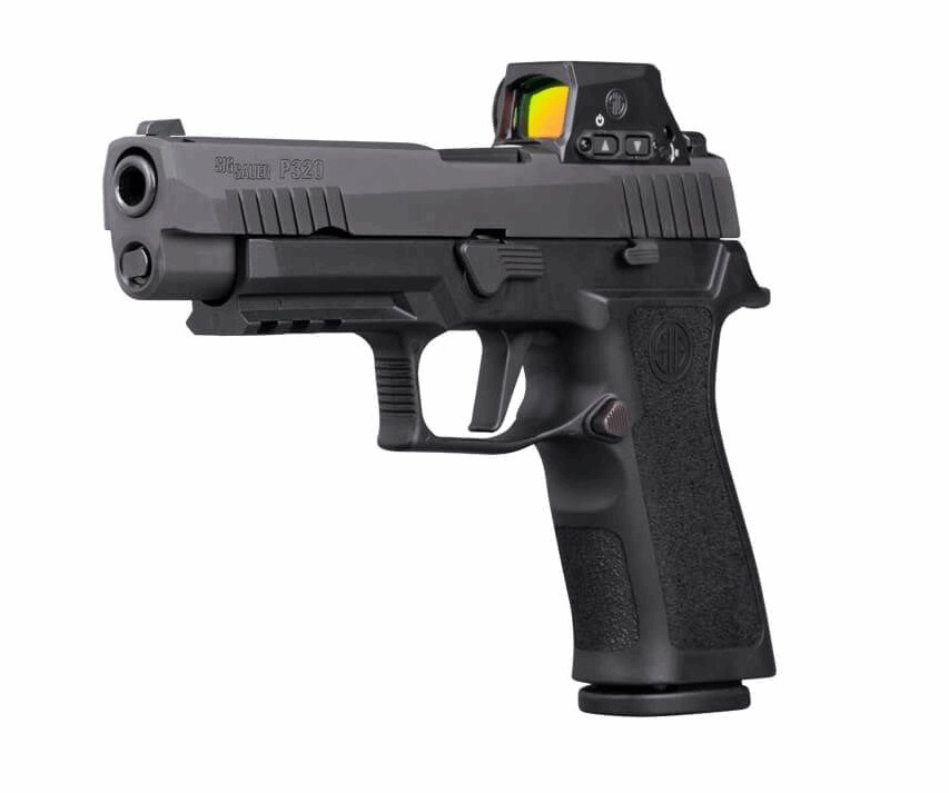 P320 X-Full leveres med SIGs XRay3 dag/nattsikter for rask og tydelig målfanging i alle lysforhold, og den bakre siktetallerkenen er designet for direkte montering av Romeo1PRO og andre optikker med PRO-RX-fotavtrykk — altså «optic-ready» uten adapterplate. Pistolens modulære konsept gjør den svært tilpasningsdyktig, og to 17-skudds magasiner følger med for praktisk bruk og trening.