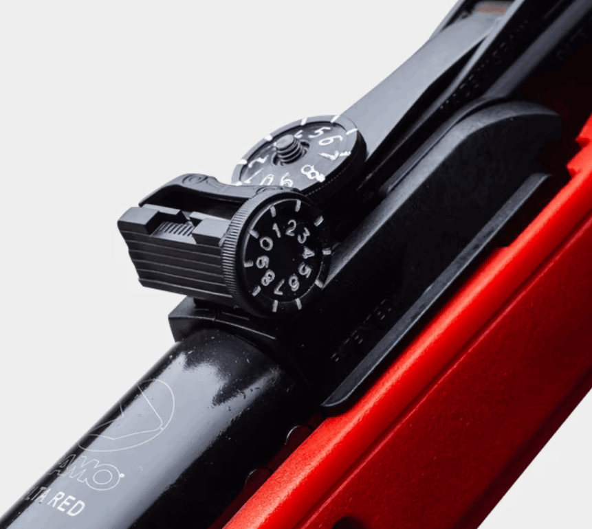 På bildene ser vi at Gamo bruker tydelig merkede, store justeringshjul, som gjør det mye lettere for unge skyttere å lære hvordan justering faktisk fungerer.