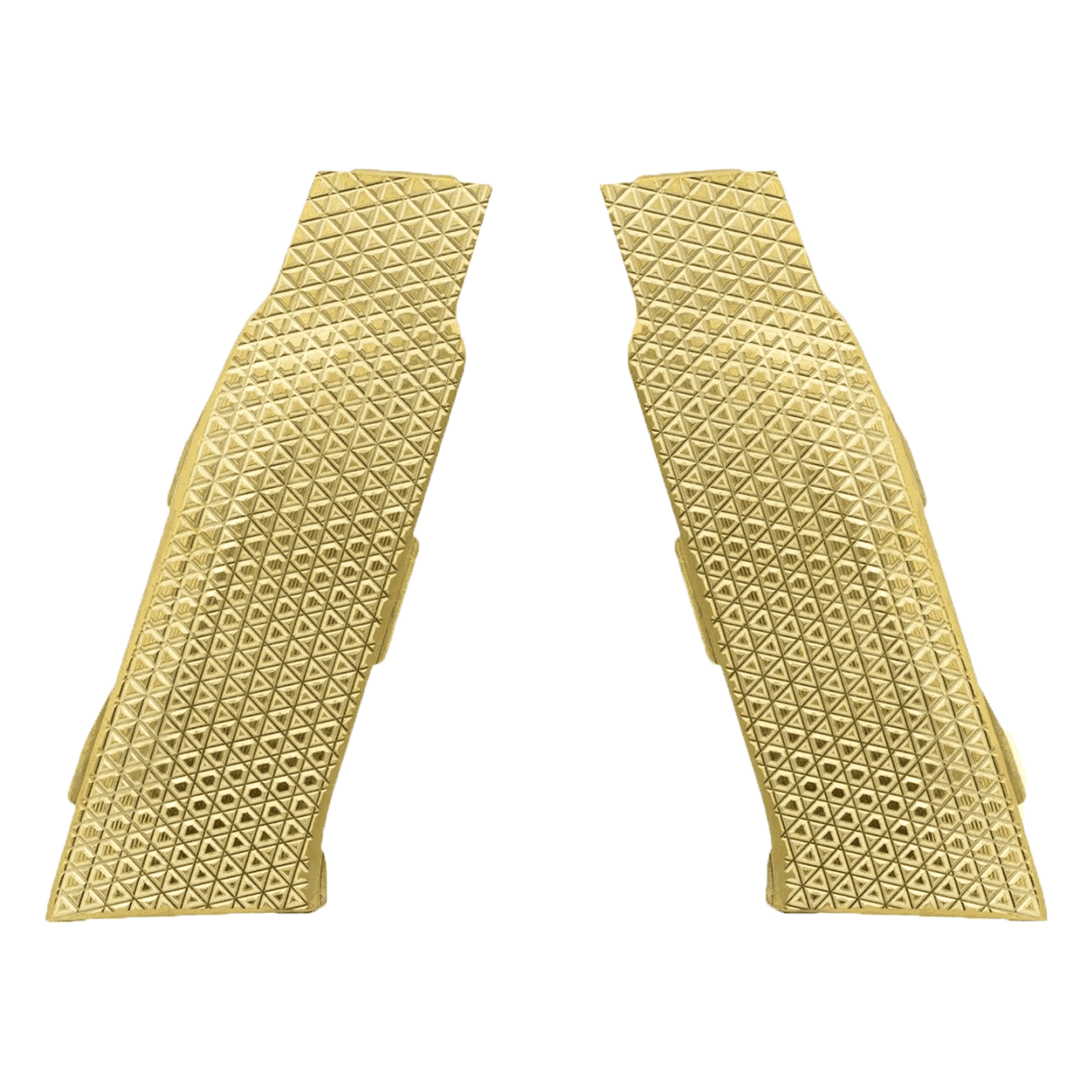 LAUGO Grips S SNOWFLAKE i messing er spesialutviklede grep for Laugo Arms Alien Creator-pistolen. Med sin kompakte størrelse (S) gir de en mer kontrollert og ergonomisk tilpasning for skyttere som foretrekker et smalere grep.