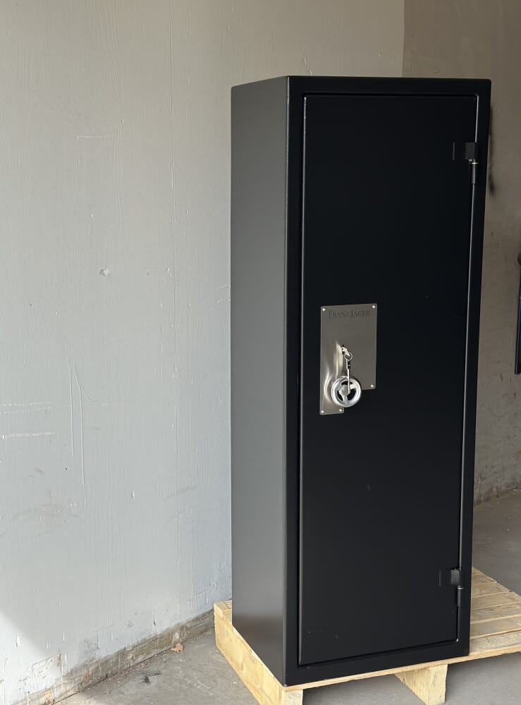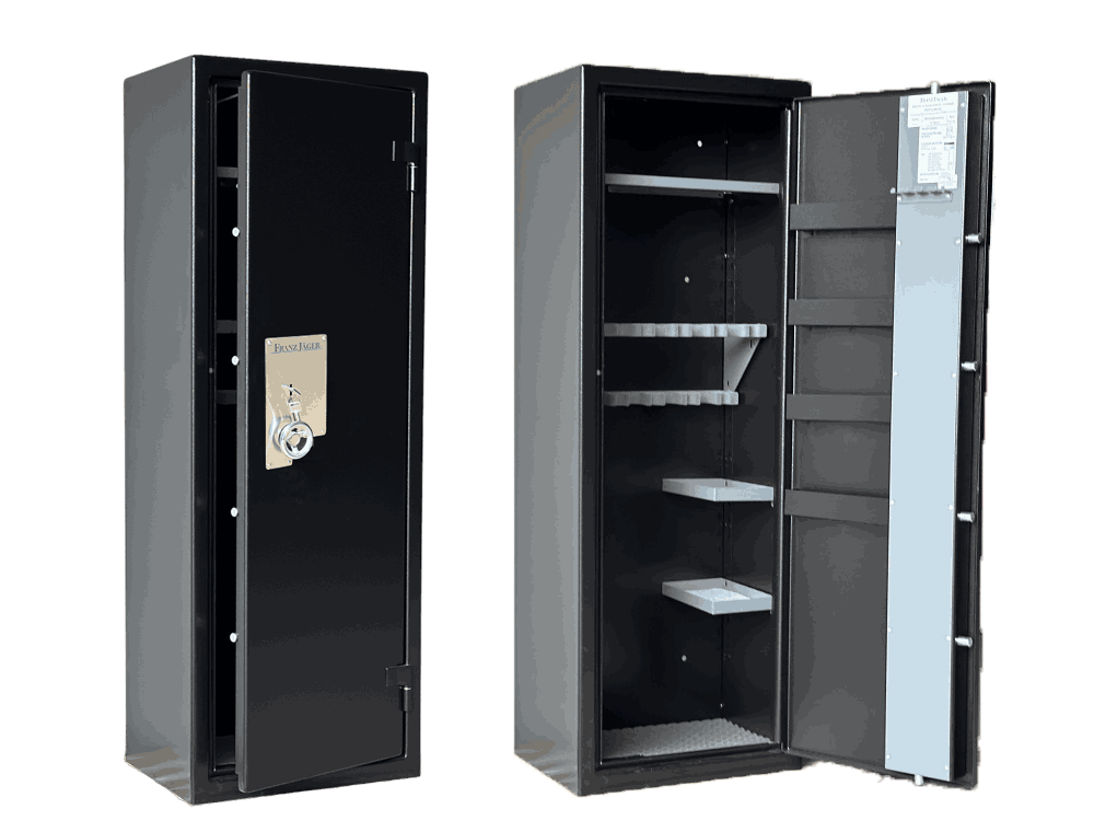 Franz Jager 8/16 Key Exclusive er et solid og stilrent sikkerhetsskap, utviklet for trygg oppbevaring av våpen, smykker, kontanter og andre verdifulle eiendeler. Skapet er FG-godkjent (nr. 1050/15) etter de strengeste norske kravene, testet og sertifisert av Sintef i Trondheim. Dette betyr at skapet er godkjent for oppbevaring av våpen i henhold til gjeldende lover og forsikringskrav.