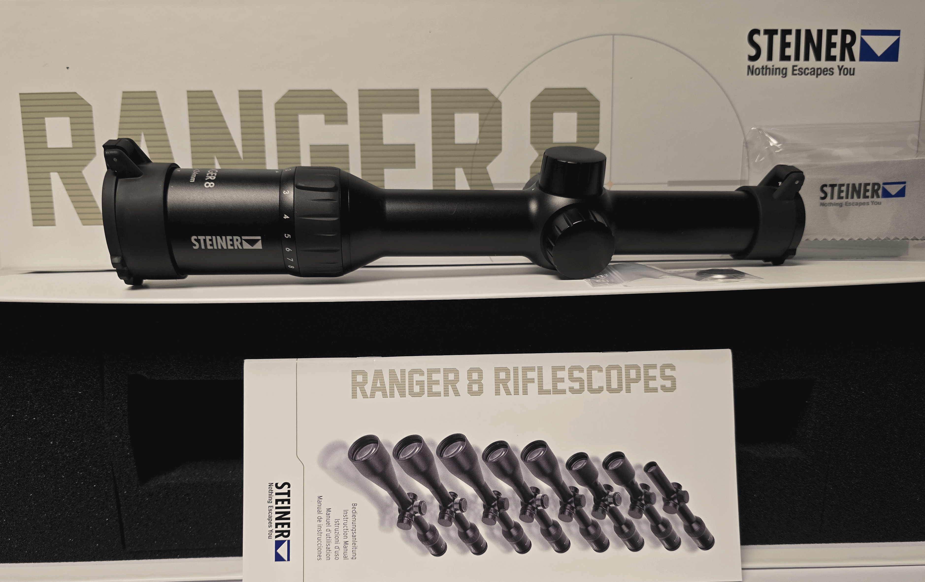 Steiner Ranger 8, 1-8x24 er et kompromissløst allround-sikte. Med krystallklar optikk, ekstremt bredt synsfelt og integrert ballistisk tårn er dette et toppvalg for jegeren som krever rask måloppdagelse og sikker avstandsbruk.