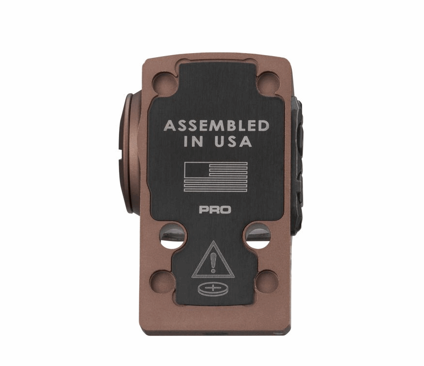 ROMEO-X Enclosed har ultra-lav byggehøyde, som muliggjør co-witness med standard høyde jernsikter. Sidemontert batteri gjør det mulig å bytte batteri uten å demontere siktet eller miste innskyting. Denne utgaven leveres med Circle-Dot-retikkel og PRO-footprint.