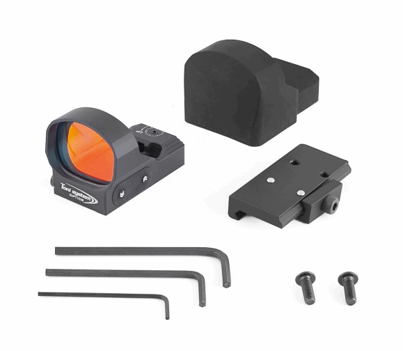 Siktet er bygget i maskinert aluminium, har 10 justerbare lysnivåer og solide justeringsmuligheter for både høyde og side. Den store linsen gir god oversikt, samtidig som totalvekten holdes lav – bare 39,6 gram inkludert batteri.