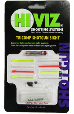 HI-VIZ PM2003 TriComp er et universalt haglesikte som enkelt erstatter det originale kornet. Siktet leveres med seks utskiftbare fiberoptiske staver – tre trekantede og tre runde – i forskjellige farger og høyder, slik at du kan tilpasse siktebildet etter lysforhold, skytestil og personlige preferanser.